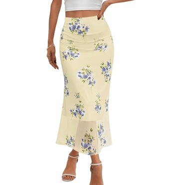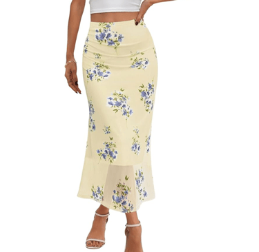 Floral Mesh Midi Skirt