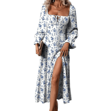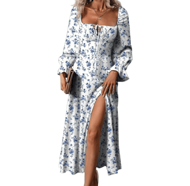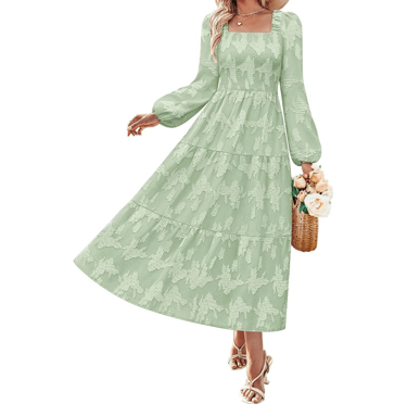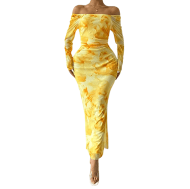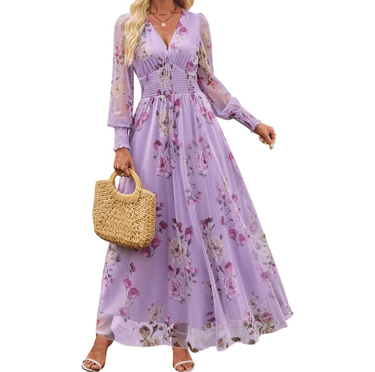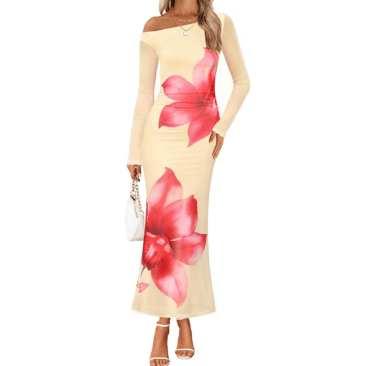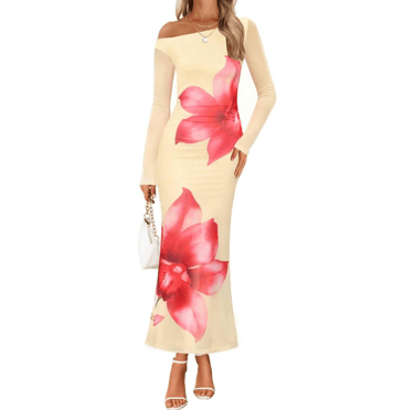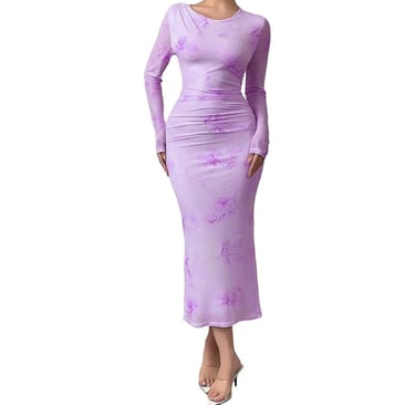 Floral Long Sleeve Mesh Bodycon Long Dress