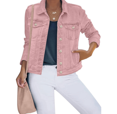 Button Down Stretch Fitted Long Sleeves Denim Jean Jacket