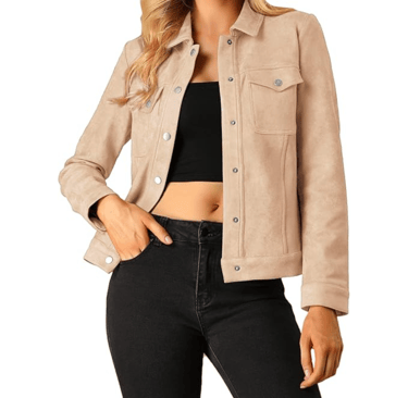 Turn-Down Collar Flap Pockets Snap Button Faux Suede Jacket